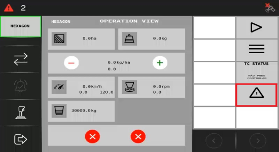 The alarm acknowledgment shows implement alarms and appears when a critical alarm is triggered. During operation, these alarms are automatically displayed on the screen to ensure you are promptly informed of any issues.