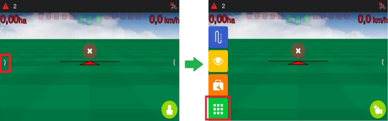 1. Open the menu on the operations screen by clicking the arrow on the left-hand side, then selecting the menu button as shown below:
