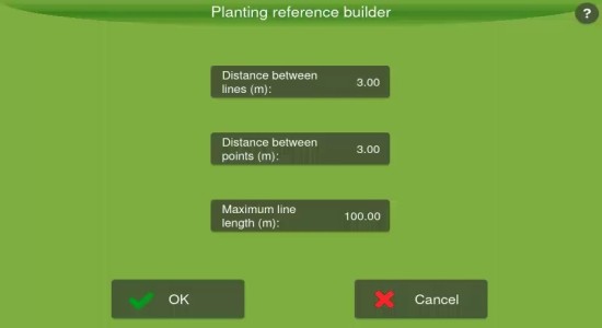5. Once you have filled out all the fields, press OK. After adjusting these parameters, the system will generate a grid of reference lines and points based on your settings. These references will guide planting operations, with consistent spacing and alignment across the entire field.