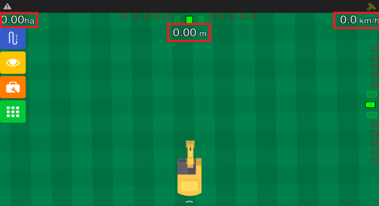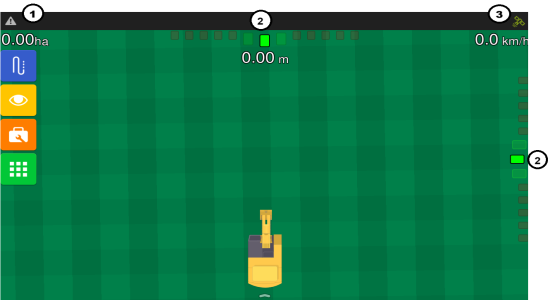 The operation screen is the screen through which you will mostly interact with the Planting Assistant. It displays essential information in real time and provides access to system settings.
