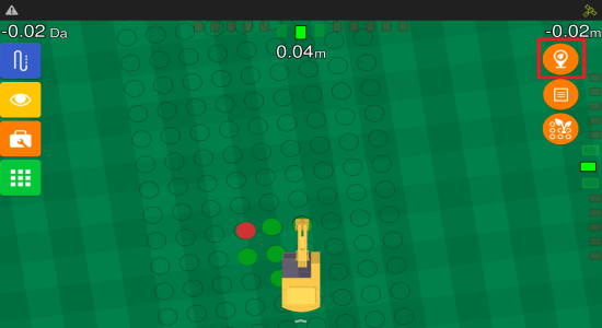As soon as the operation starts, the screen will look similar to the one shown below. Green dots represent seedlings planted within the tolerance defined in Position tolerance, while red ones indicate those that are outside this limit.
